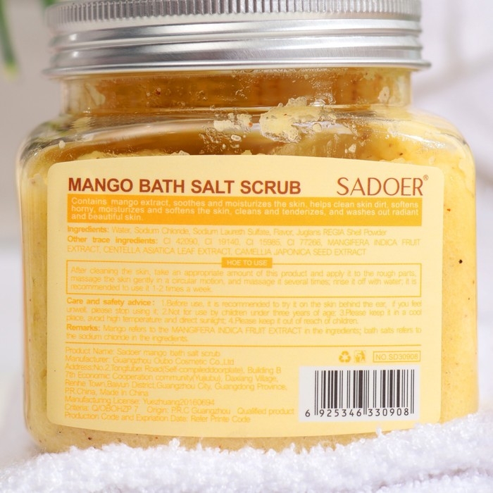 Отшелушивающий скраб для тела с манго SADOER успокаивает и увлажняет кожу, помогает очистить ее от загрязнений, смягчает ороговевший слой эпидермиса. Экстракт манго действует как антиоксидант, защищая кожу от воздействия ультрафиолета, осветляет пигментацию и восстанавливает клеточные мембраны, тем самым запускает активную регенерацию клеток. Скраб для тела не имеет в своем составе искусственных заменителей масел, благодаря этому сохраняются природные аминокислоты, которые оказывают антивозрастное действие.