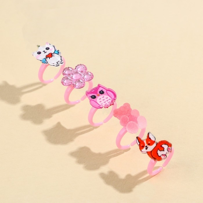 Набор детских колец «Выбражулька» красота, форма МИКС, цвет розовый