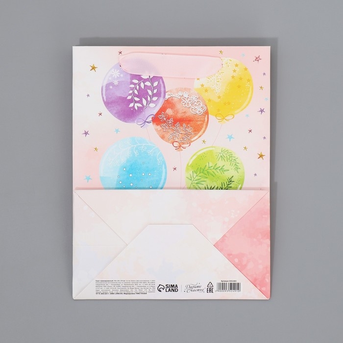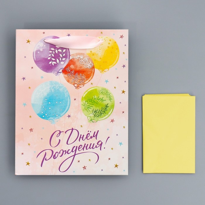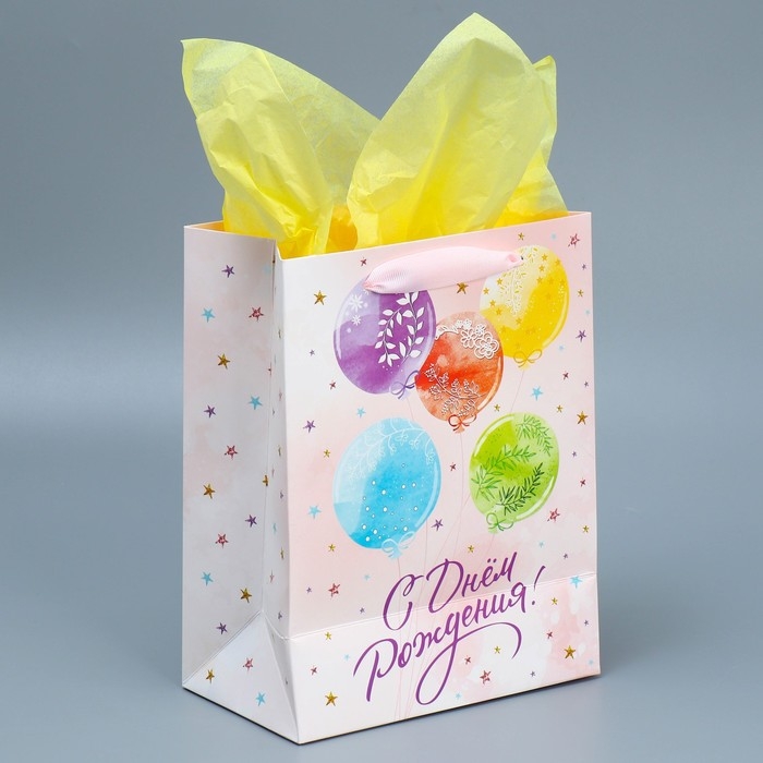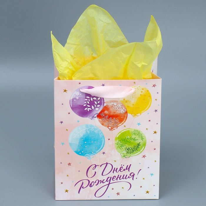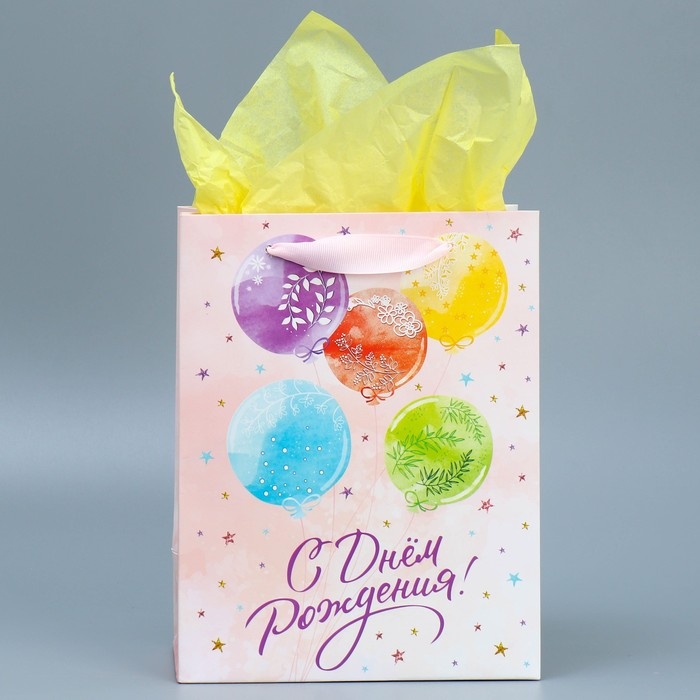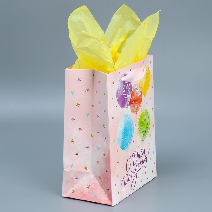 Пакет подарочный ламинированный с тишью, упаковка, «С Днём рождения», MS 18 х 23 х 10 см