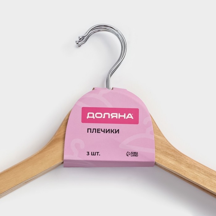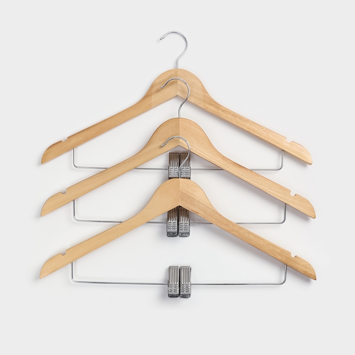 Плечики - вешалки для брюк и юбок Доляна, 45×27 см, 3 шт, с зажимами, деревянные сорт С, широкие плечики