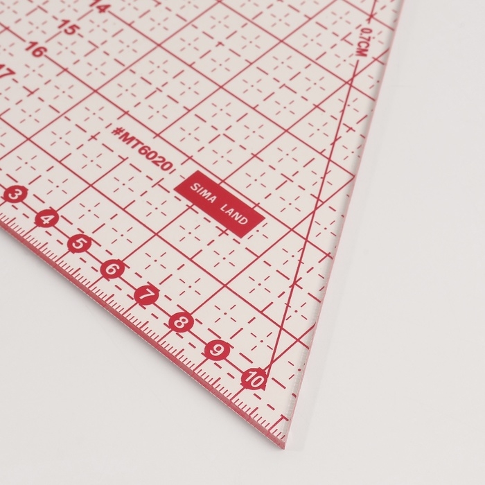 Линейка для квилтинга и пэчворка, 20 × 23 × 0,3 см, цвет прозрачный/розовый
