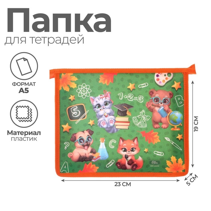 Папка для тетрадей А5, 230 х 190 х 50 мм, молния сверху, пластиковая, Calligrata "Зверята"