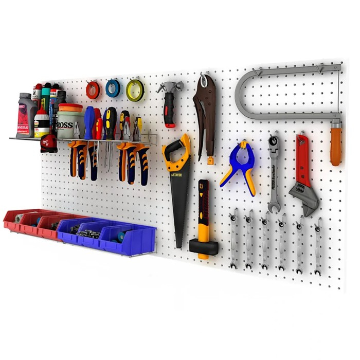 Настенная перфорированная панель односторонняя 60×0,6×180 см, шаг 2,5 см, цвет белый