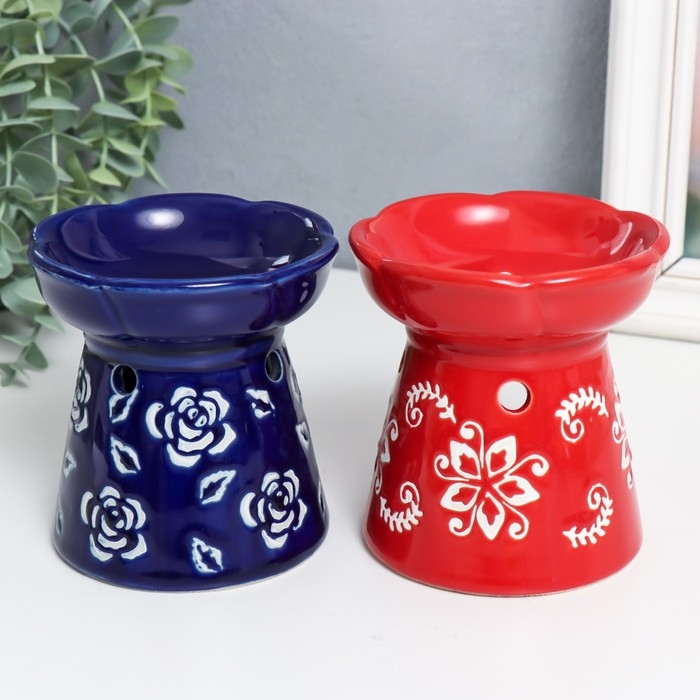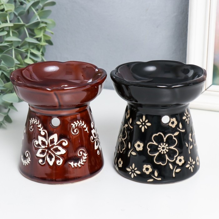 Аромалампа керамика "Цветы и веточки" МИКС 10х10х10,5 см