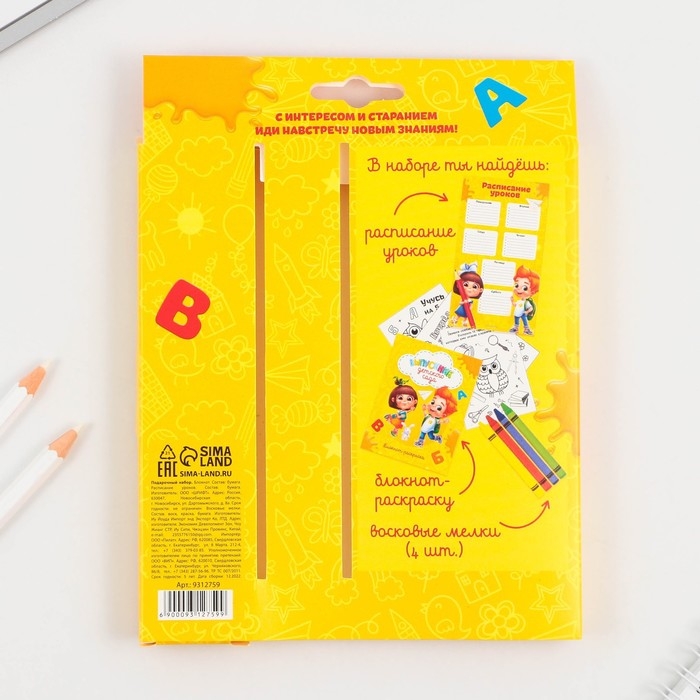 Подарочный набор на выпускной «Выпускника детского сада» , блокнот-раскраска, расписание уроков и восковые мелки 4 шт ,
