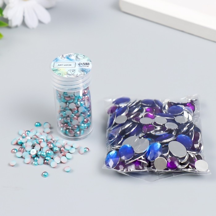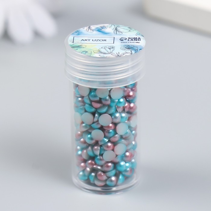 Декор "Полубусины и стразы. Градиент голубой" d=4 мм 10г 200 шт 5х2,5 см
