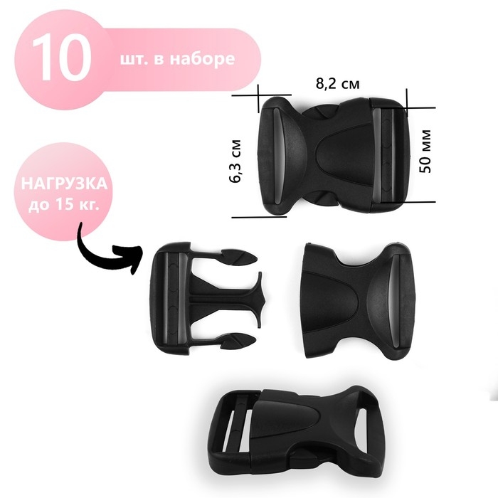 Фастекс 50 мм, нагрузка до 15 кг, 10 шт, цвет чёрный, цена за 1 набор