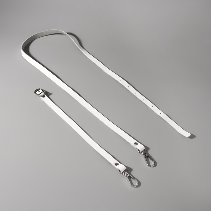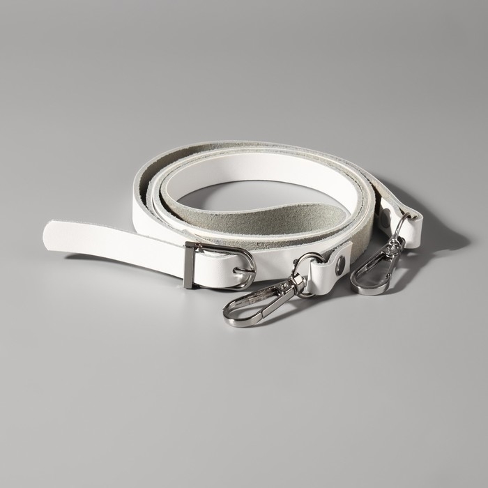 Ручка для сумки из натуральной кожи, регулируемая, с карабинами, 125 ± 2 см × 1,2 см, цвет белый/серебряный