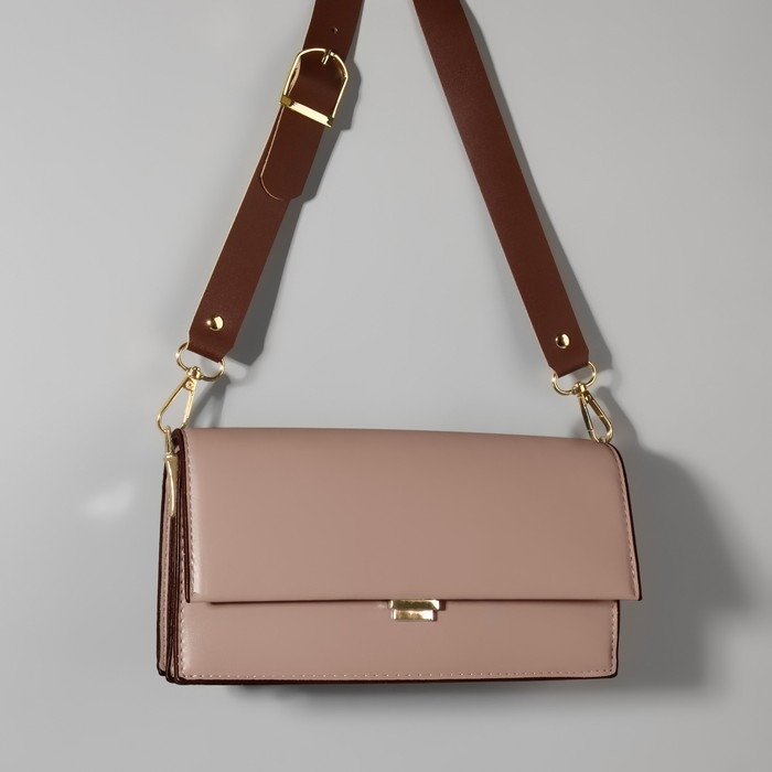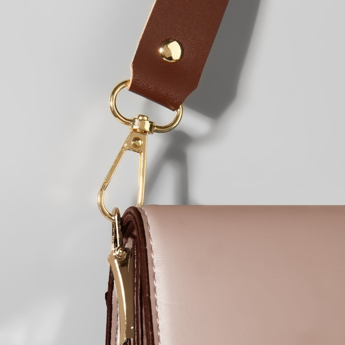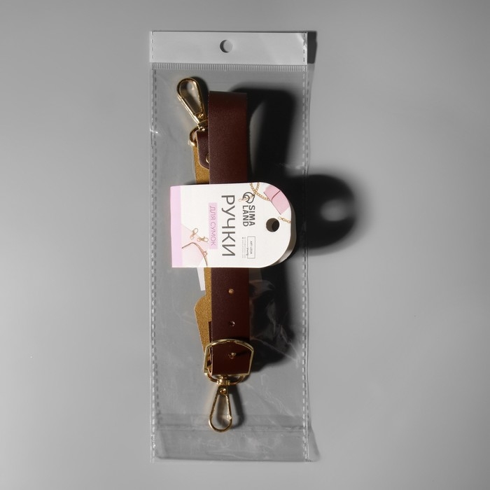 Ручка для сумки из натуральной кожи, регулируемая, с карабинами, 60 ± 2 см × 2,5 см, цвет коричневый/золотой