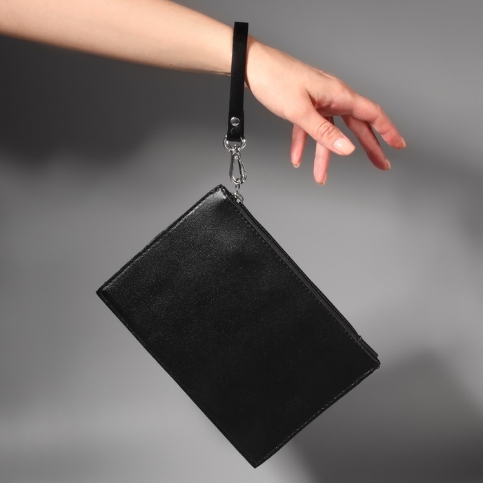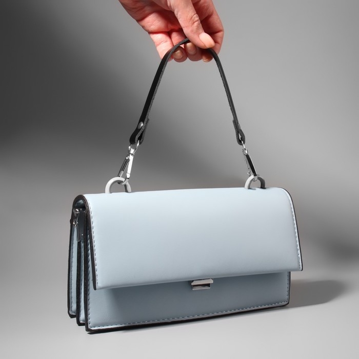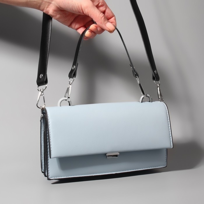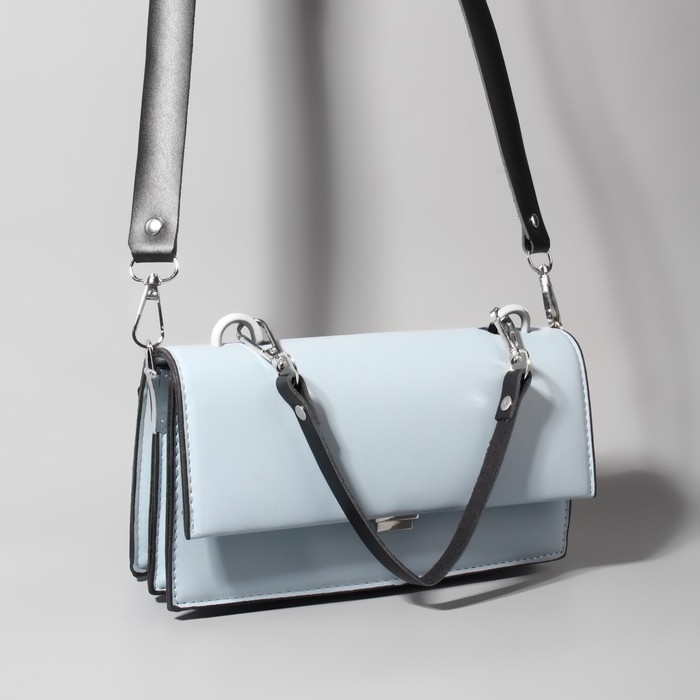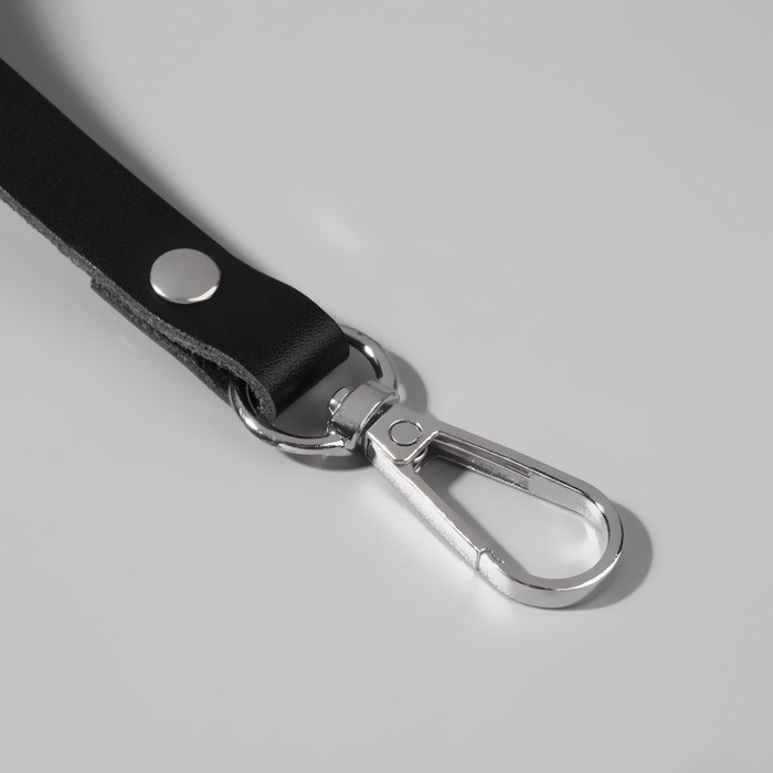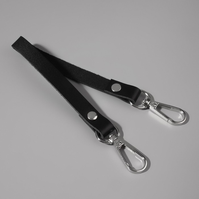 Ручка для сумки из натуральной кожи, с карабинами, 30 ± 2 см × 1,2 см, цвет чёрный/серебряный