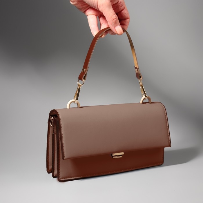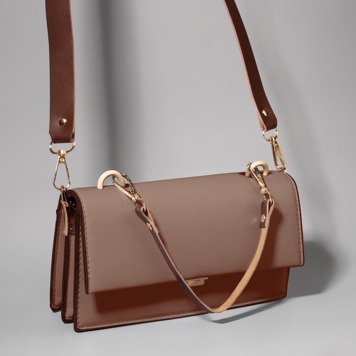 Ручка для сумки из натуральной кожи, с карабинами, 30 ± 2 см × 1,2 см, цвет коричневый/золотой