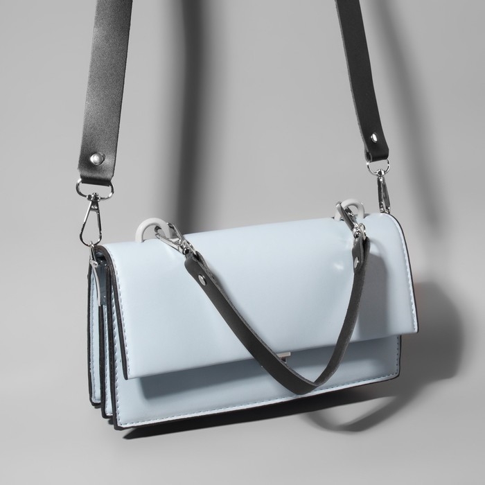 Ручка для сумки из натуральной кожи, с карабинами, 30 ± 2 см × 2,5 см, цвет чёрный/серебряный