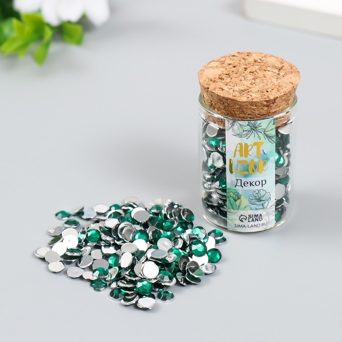 Декор для творчества в бутылочке "Стразы. Тёмно-зелёный" набор 500 шт d=0,5 см 7х2х2 см
