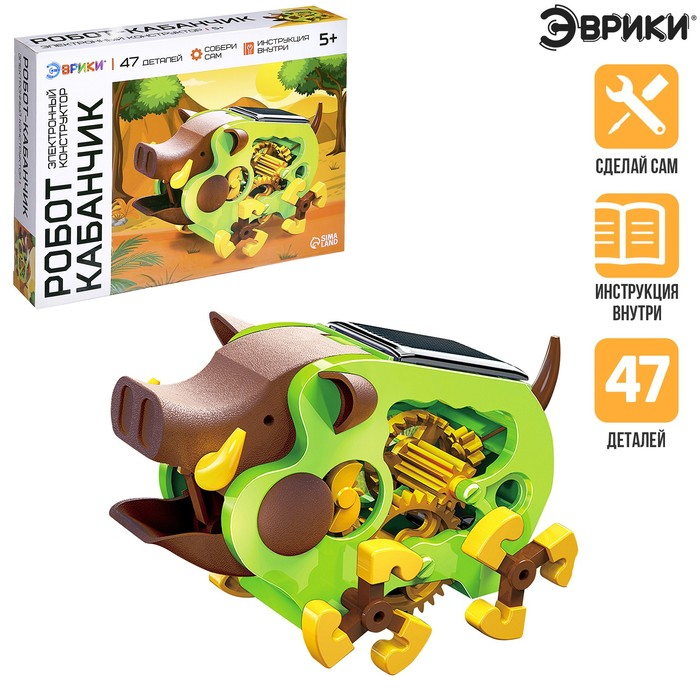 Электронный конструктор «Робот кабанчик», работает от солнечной батареи, 47 деталей