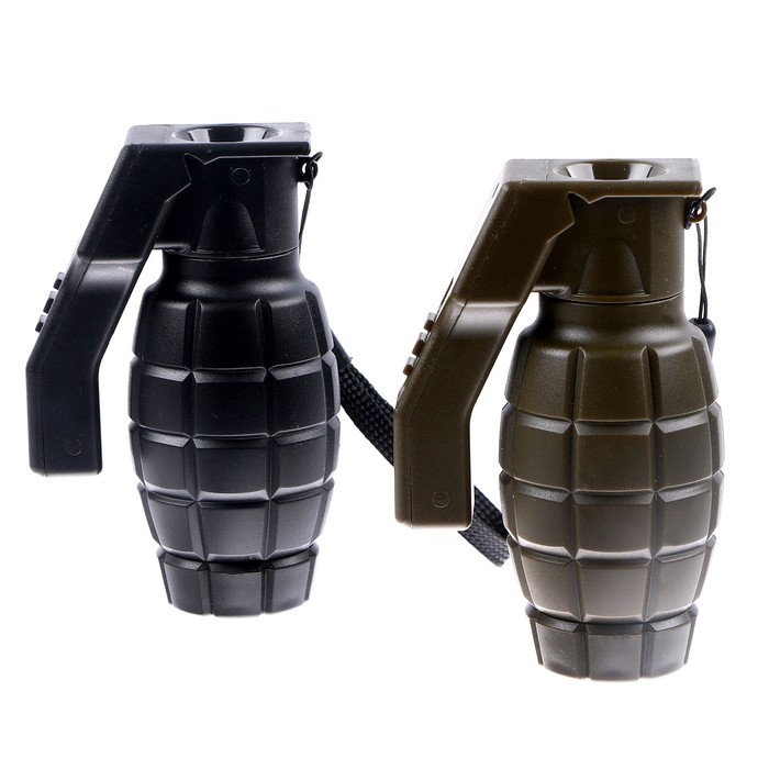 - Корпус изделия выполнен из прочного пластика, имитирующего внешний вид классической гранаты