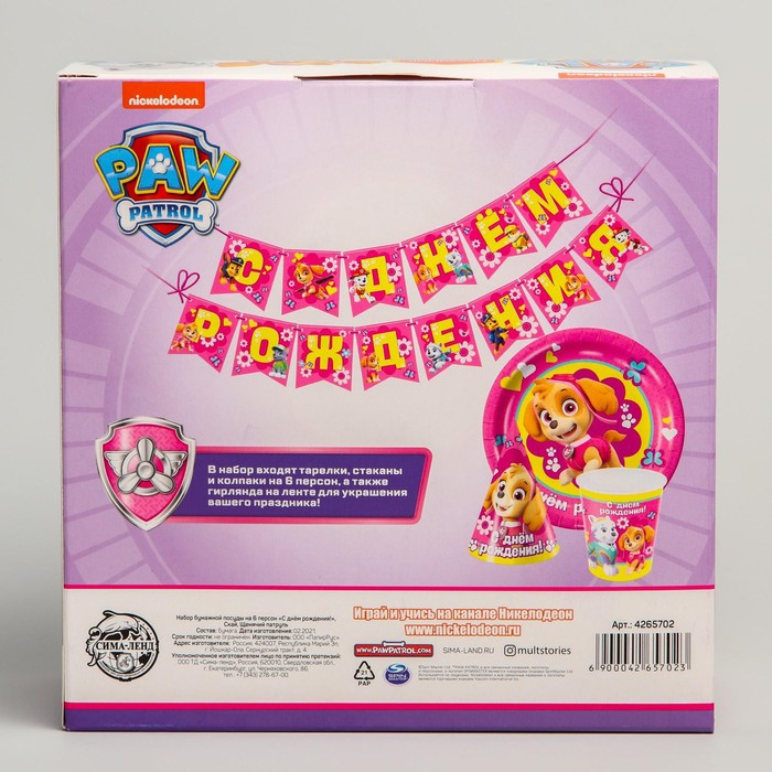 Набор бумажной посуды, на 6 персон "С днем рождения!", Щенячий патруль