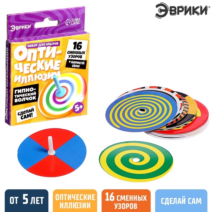 Набор для опытов «Оптические иллюзии», гипнотический волчок, 16 сменных узоров