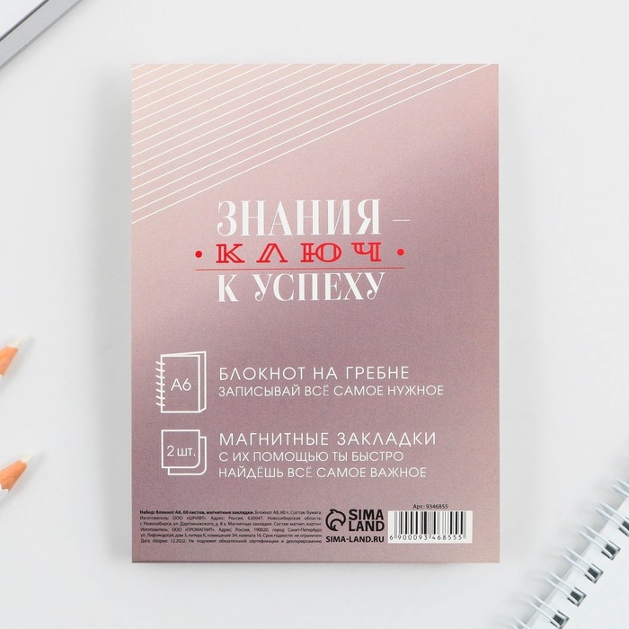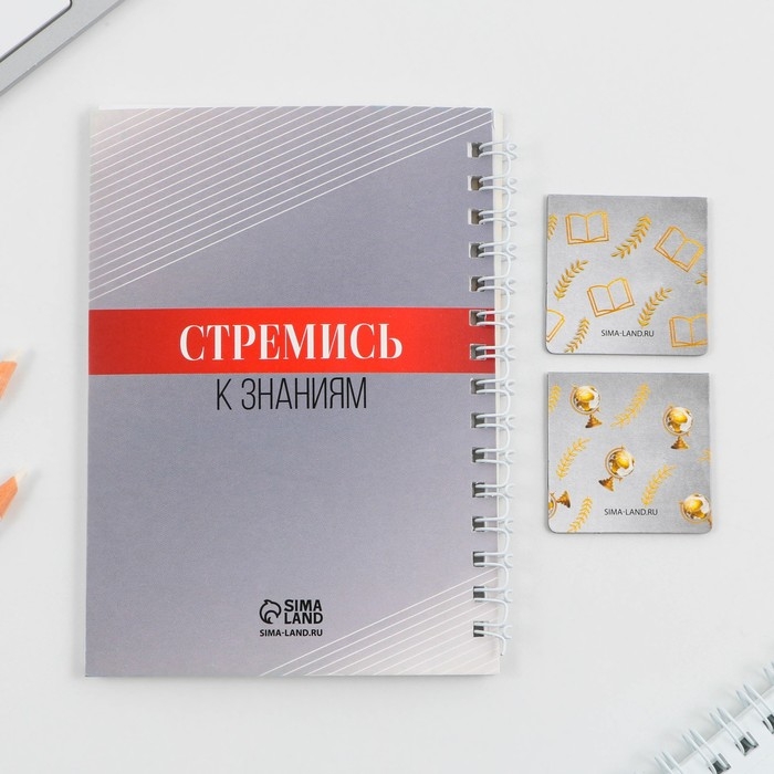 Подарочный набор на выпускной «Успехов в учёбе»: блокнот А6 60 л., магнитные закладки 2 шт.