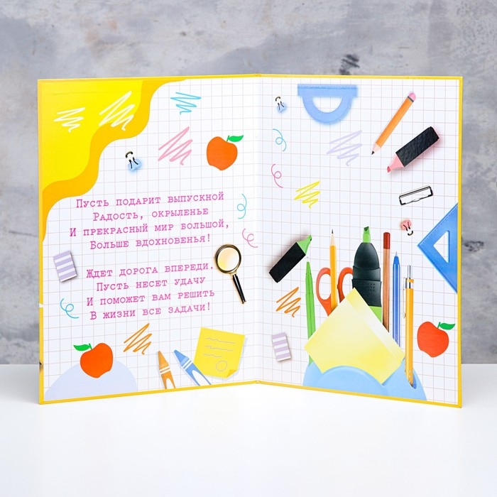 Папка-планшет, формата А4 "Выпускника" желтый фон и канцелярия