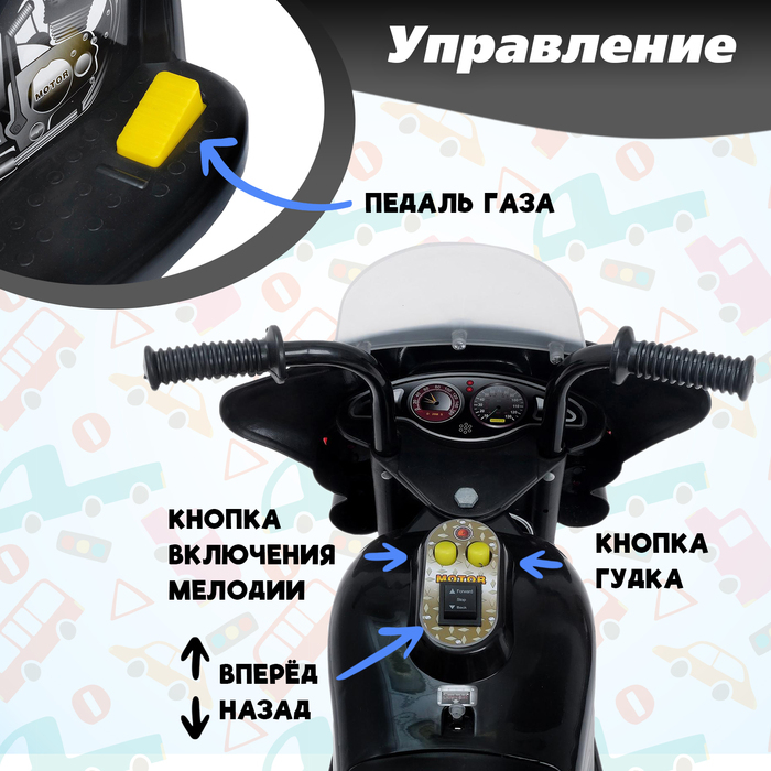 Электромобиль «Мотоцикл шерифа», цвет чёрный
