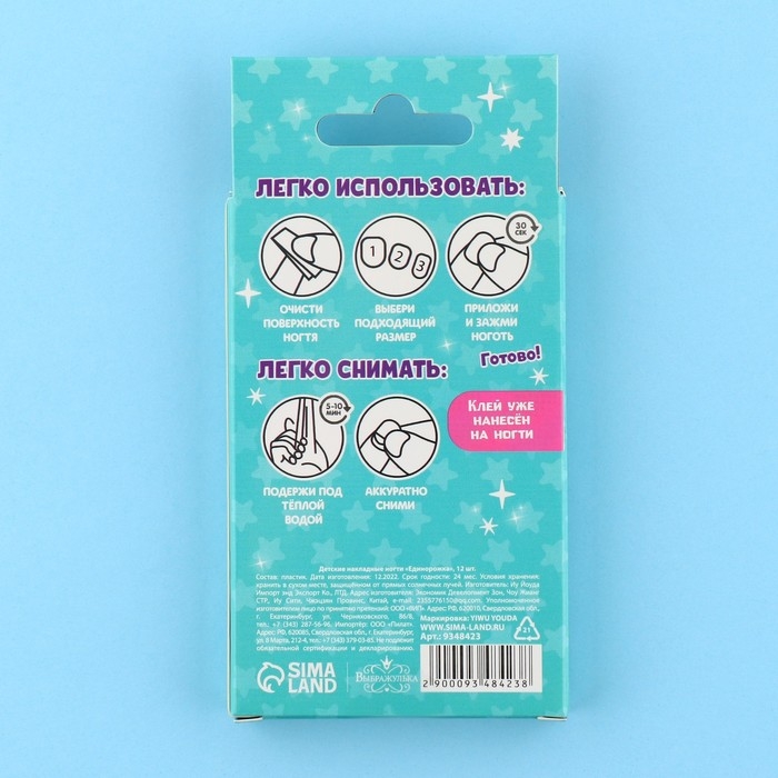 Детские накладные ногти «Единорожка», 12 шт