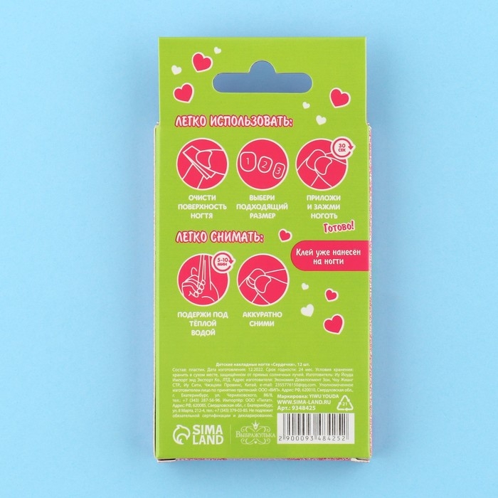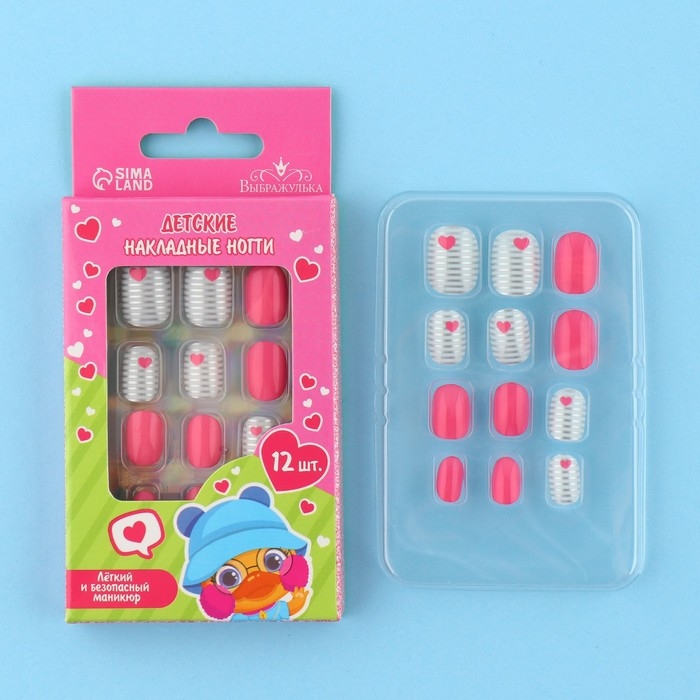Детские накладные ногти «Милахи», 12 шт, набор с браслетом и заколками