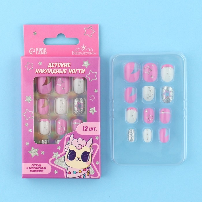 Детские накладные ногти «Милахи», 12 шт, набор с браслетом и заколками