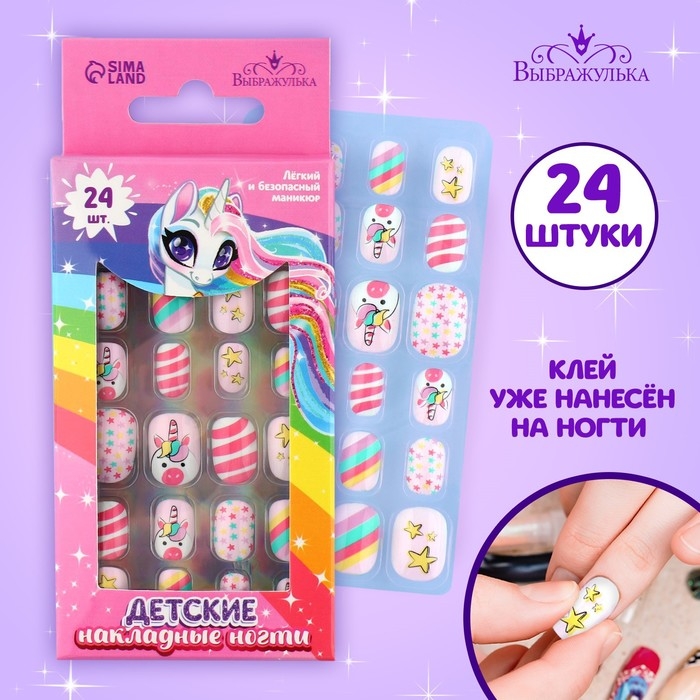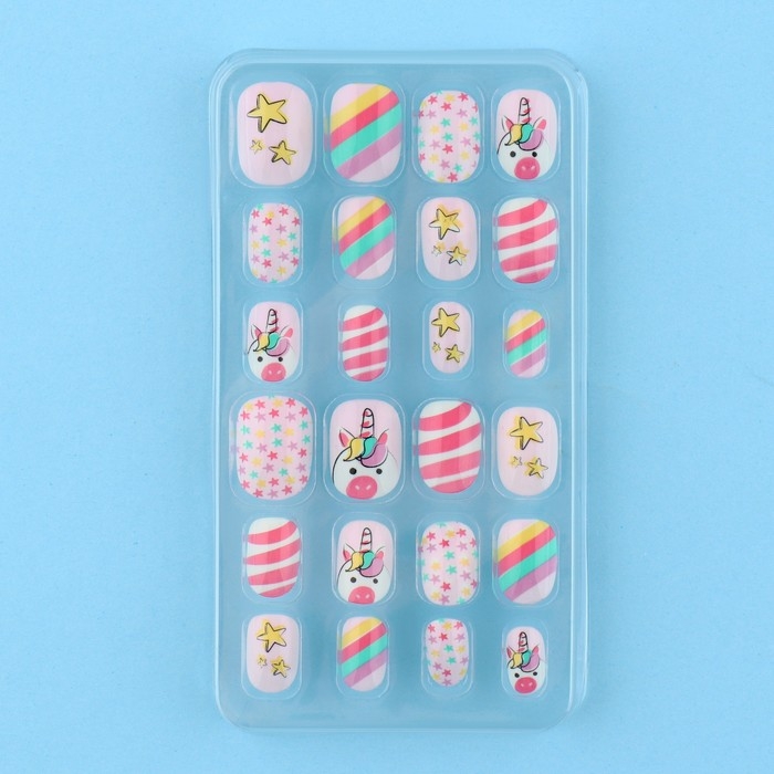 Детские накладные ногти «Розовый единорожка», 24 шт