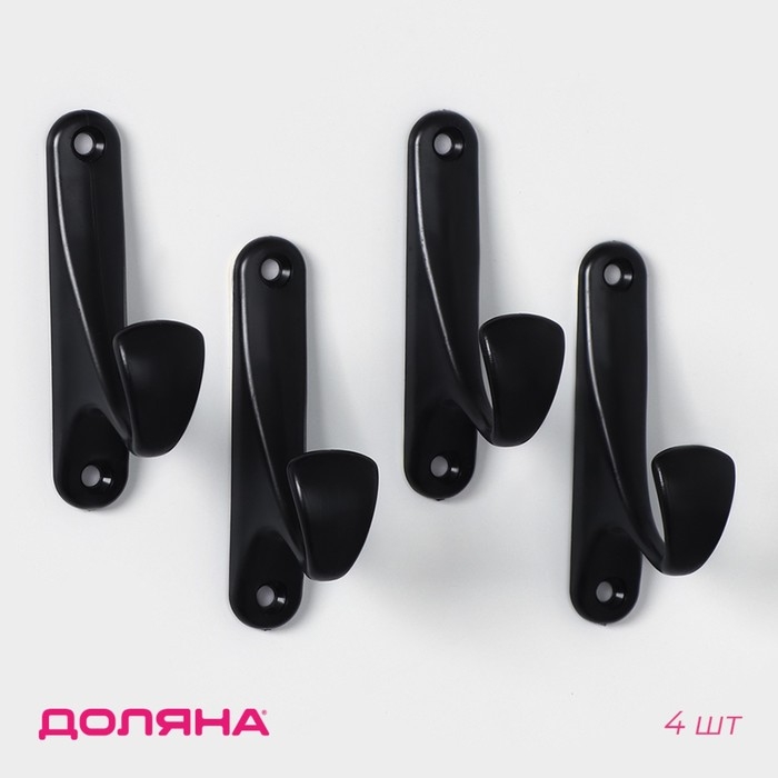 Крючки самоклеящиеся Доляна «Классик», 4 шт, цвет чёрный