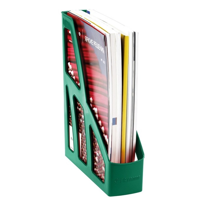 Лоток для бумаг вертикальный серии «Лидер» подходит для хранения бумажной продукции формата А4. Изделие шириной 75 мм вмещает до 600 листов. Имеется отверстие на торцевой части для удобной переноски. Изготовлен из качественного полипропилена. Цвет лотка - зелёный. Оригинальный дизайн, лёгкий, устойчивый и прочный корпус.