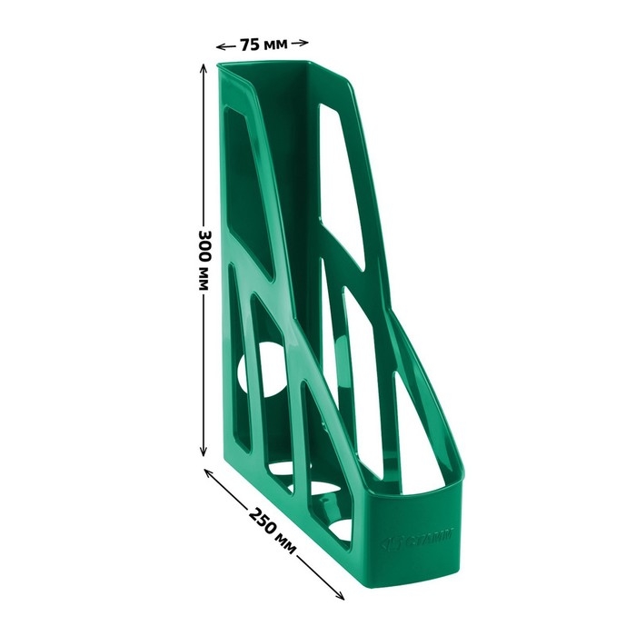 Лоток для бумаг вертикальный Стамм "Лидер", пластиковый, ширина 75 мм, зеленый