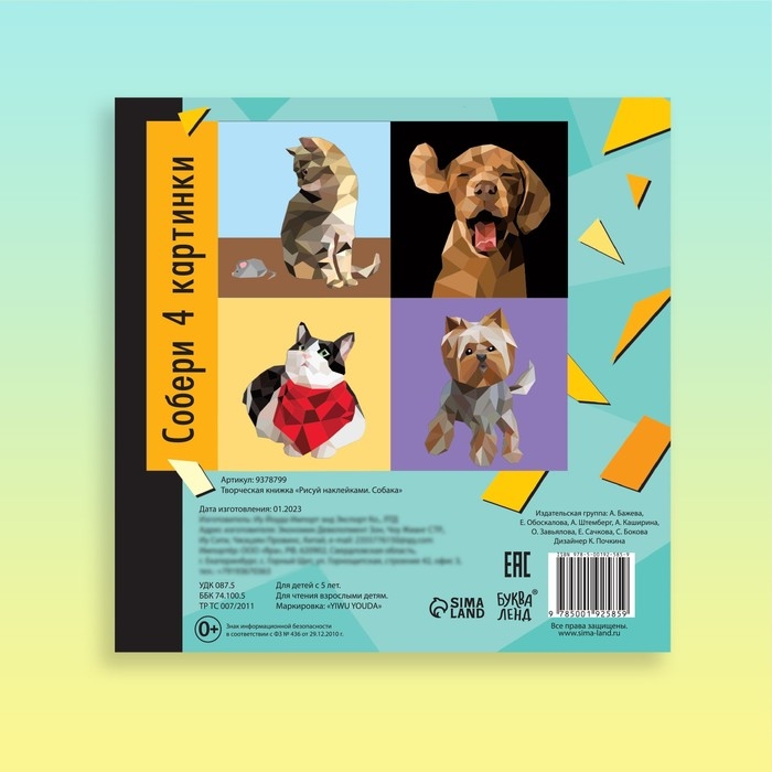 Творческая книжка «Рисуй наклейками. Собака», 12 стр., 4 картинки, 157 наклеек