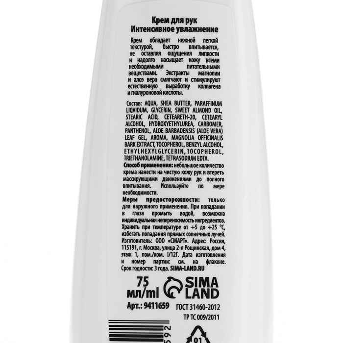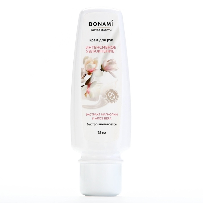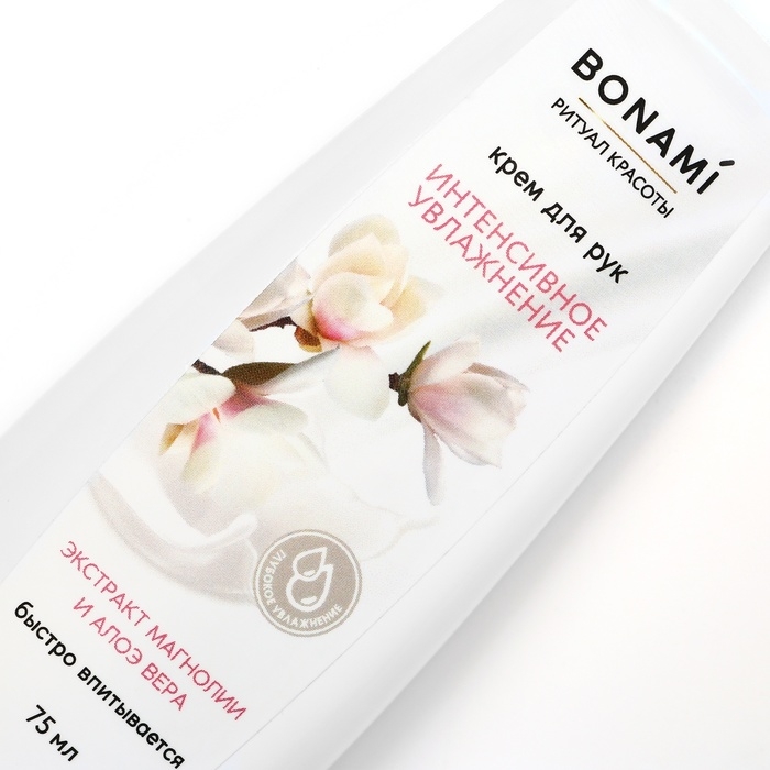 Крем для рук быстровпитывающийся с экстрактом магнолии и алоэ вера, интенсивное увлажнение, 75 мл, BONAMI