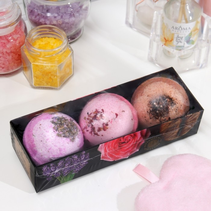 Набор бурлящих шаров Bonjour 3 шт, кофе , лаванда, роза, 360 г