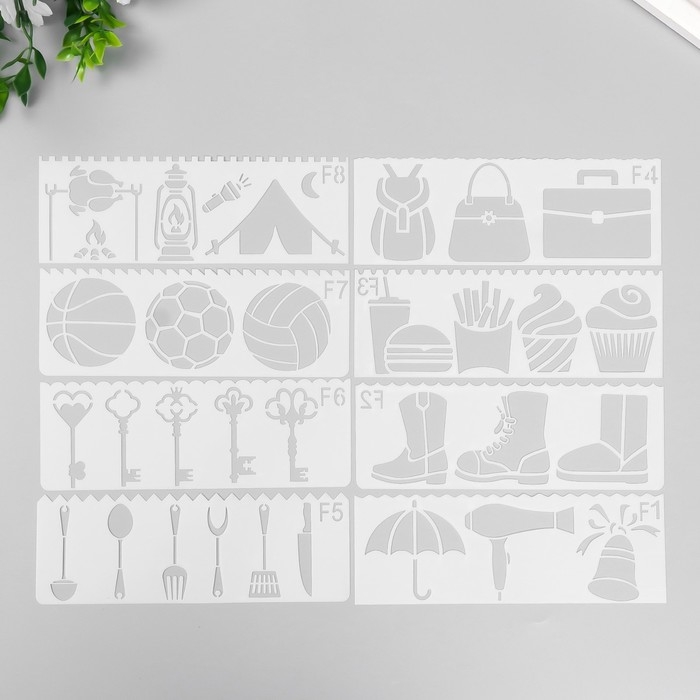 Трафарет с фигурным краем "Походный набор" набор 8 шт 17х6 см