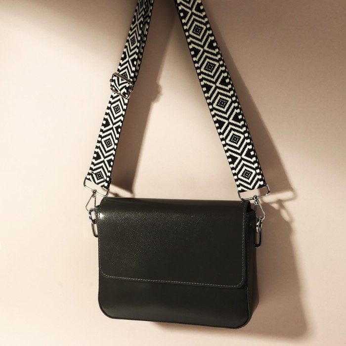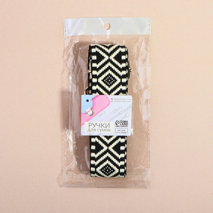 Ручка для сумки «Орнамент», стропа, 135 ± 3 × 3,8 см, цвет чёрный/белый
