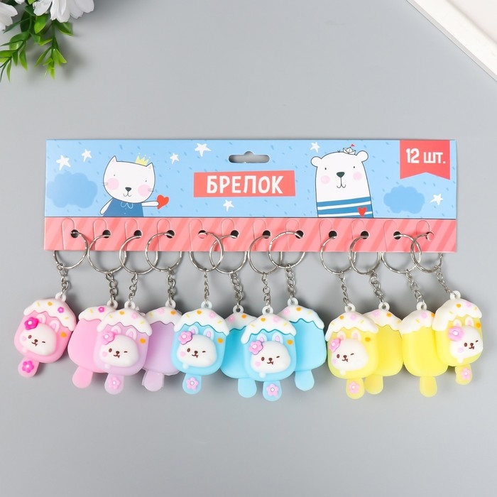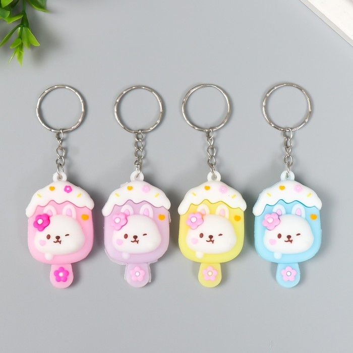 Брелок резина "Эскимо с изображением зайчика" МИКС 3,3х1,5х6 см