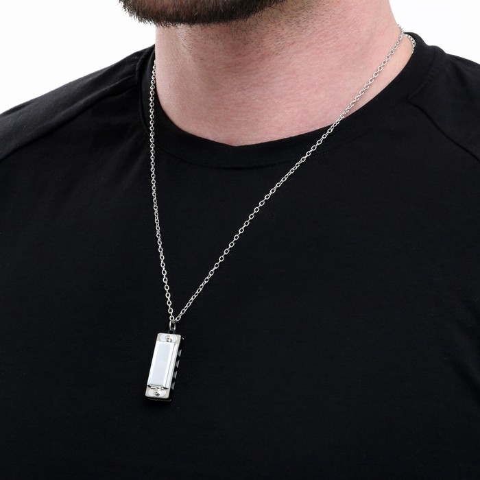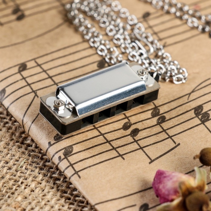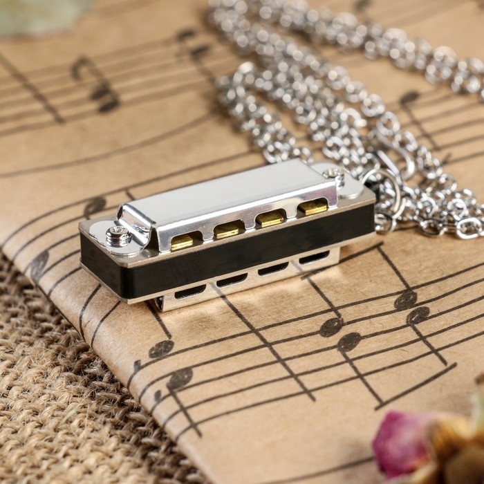 Губная гармошка Music Life 4 отверстия, 8 тонов, 3,5х1,5х1см, цепь 28см, серебристая