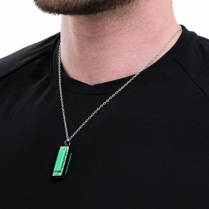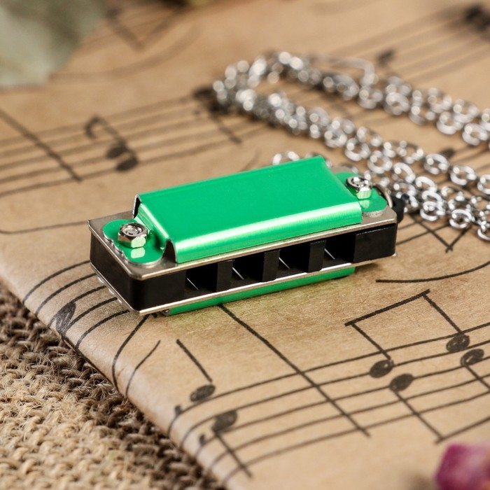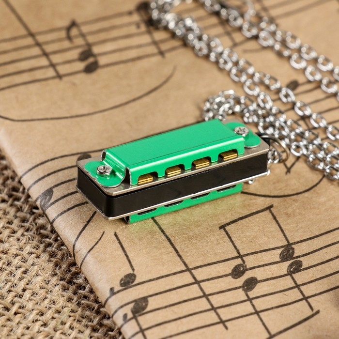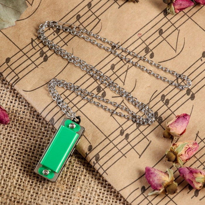 Губная гармошка Music Life 4 отверстия, 8 тонов, 3,5х1,5х1см, цепь 28см, зеленая