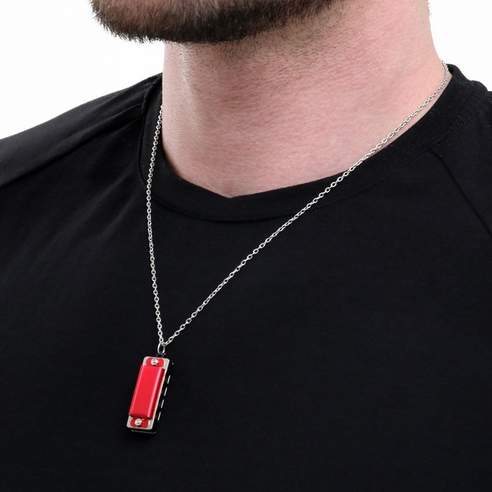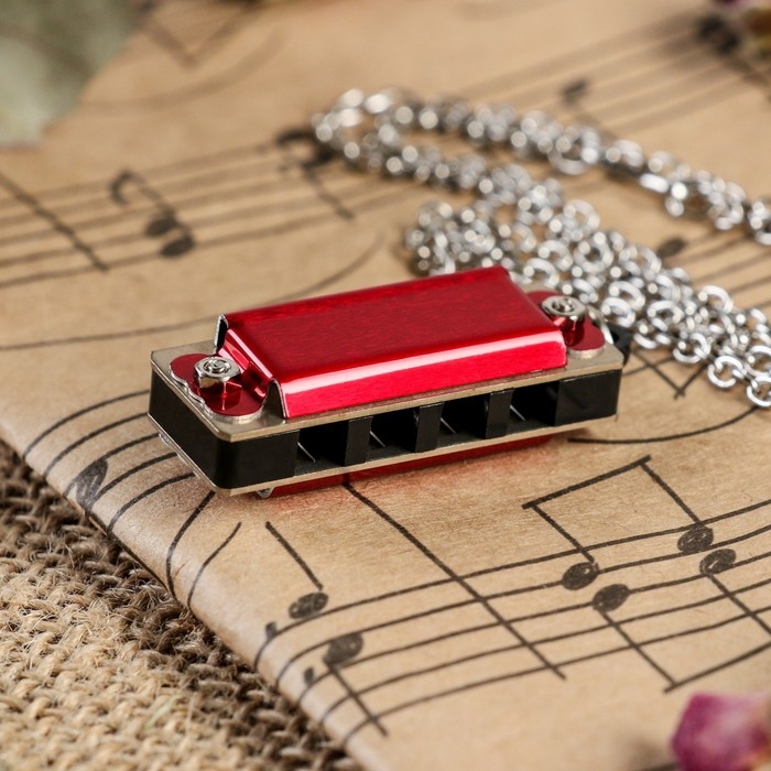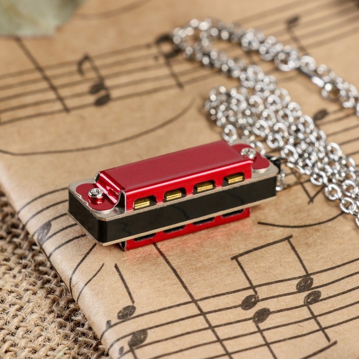 Губная гармошка Music Life 4 отверстия, 8 тонов, 3,5х1,5х1см, цепь 28см, красная