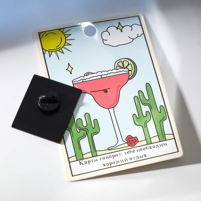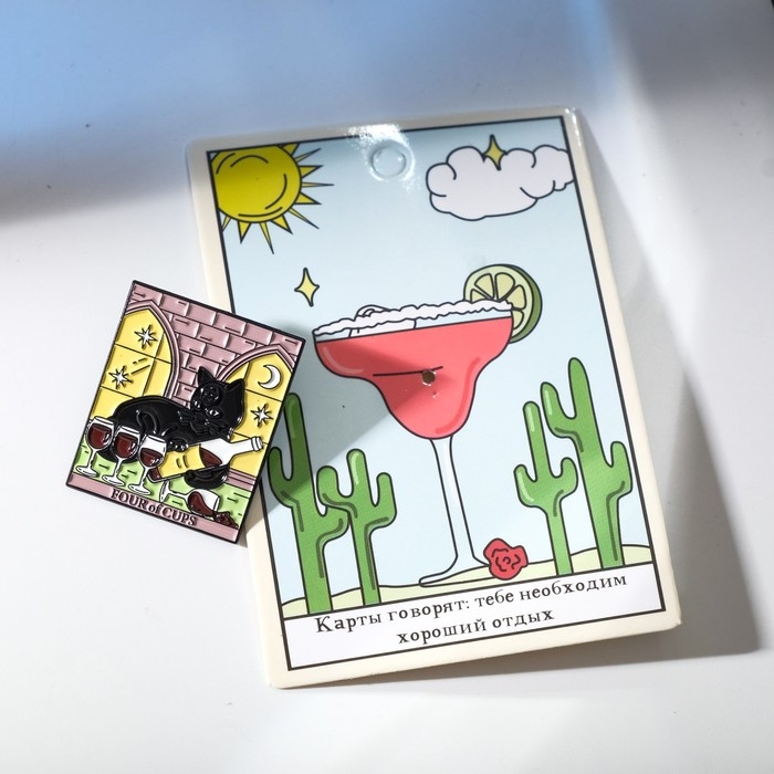 Значок «Таро» четверка кубков, цветной в чёрном металле