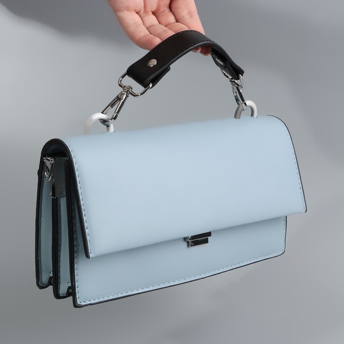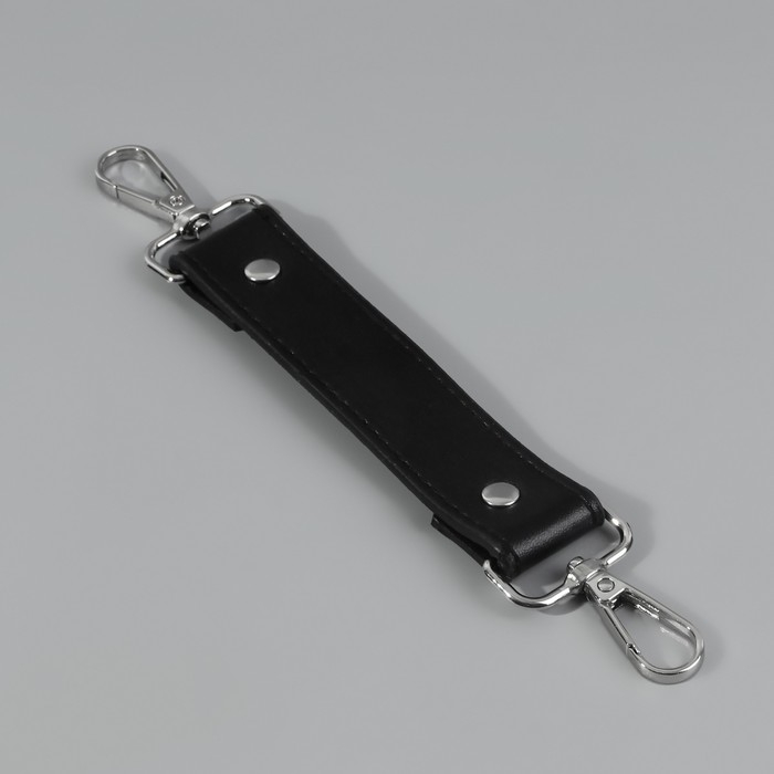 Ручка для сумки, с карабинами, 20 ± 1 см × 2,5 см, цвет чёрный/серебряный