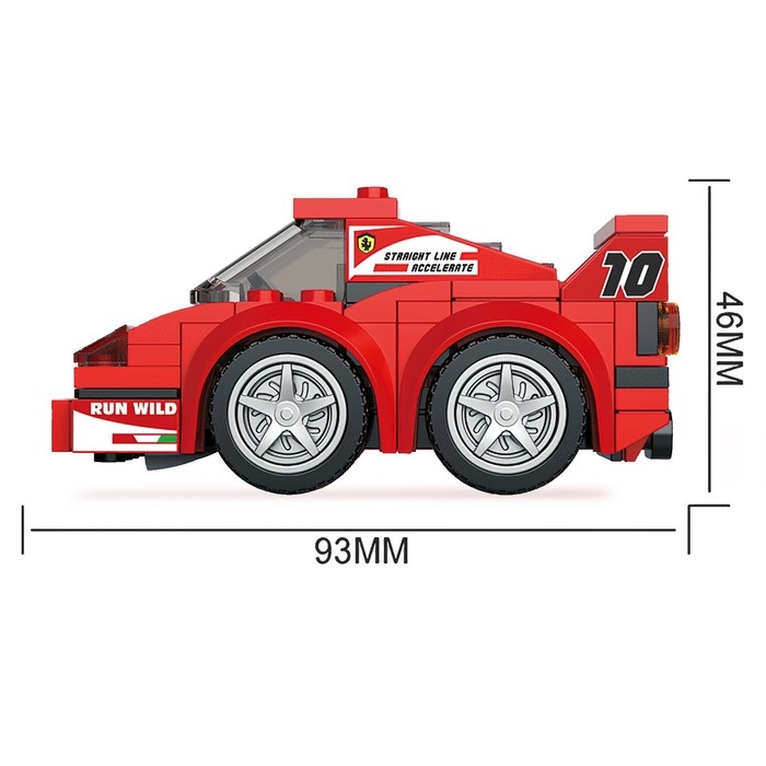 - Размер собранной модели автомобиля: длина — 9,3 см, высота — 4,6 см.