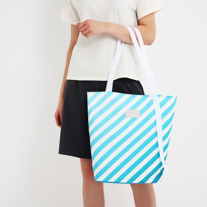 Сумка женская пляжная Nazamok, в полосочку, 39х32 см, голубая