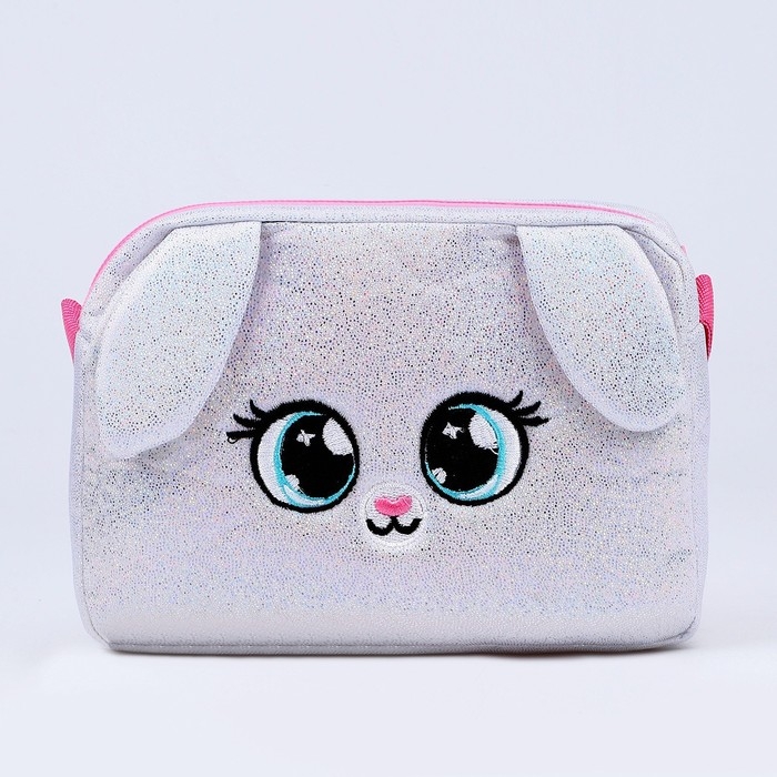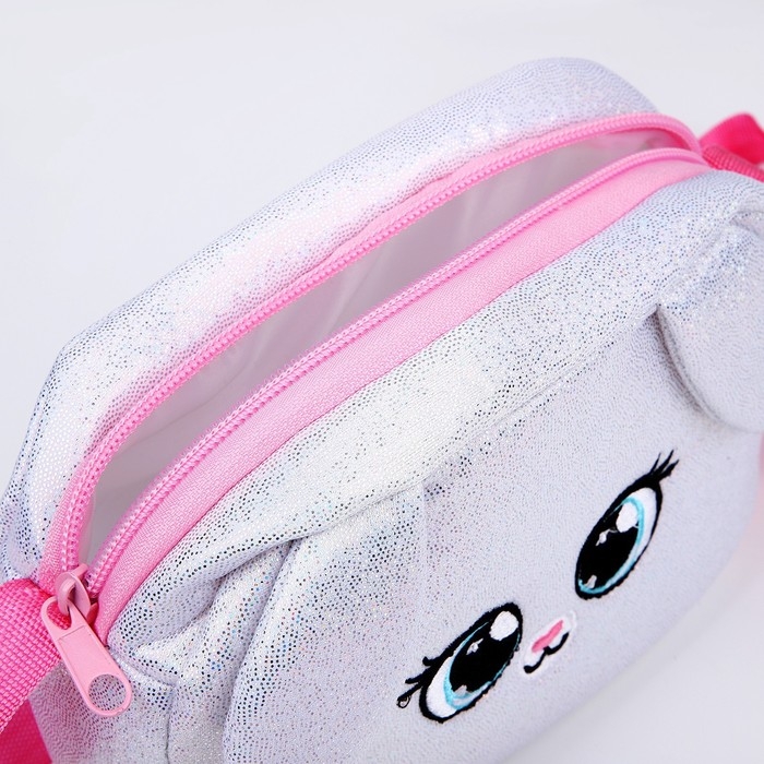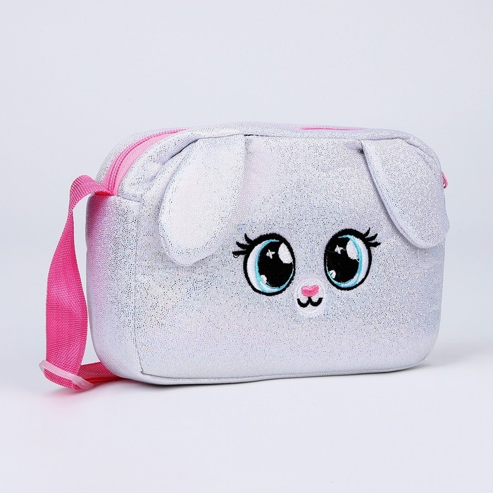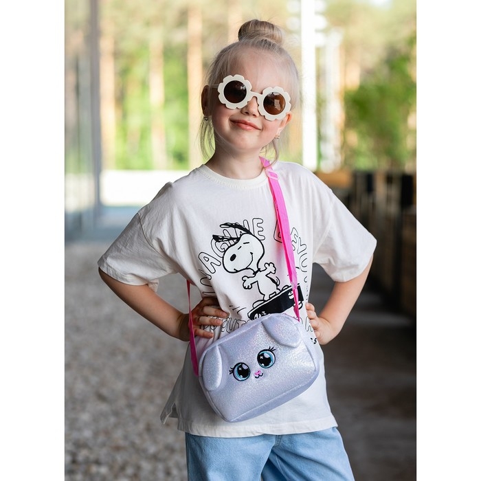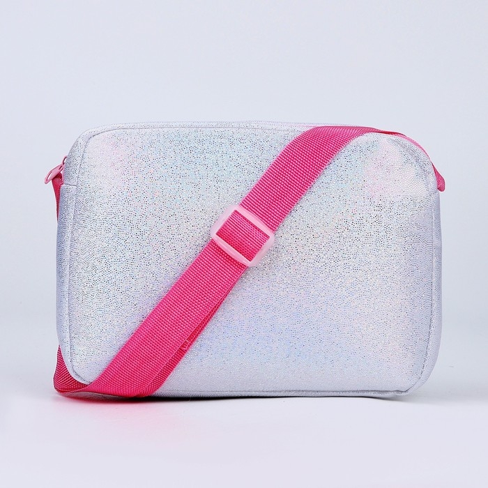 Сумка детская для девочки на молнии, длинный ремень, цвет серебристый