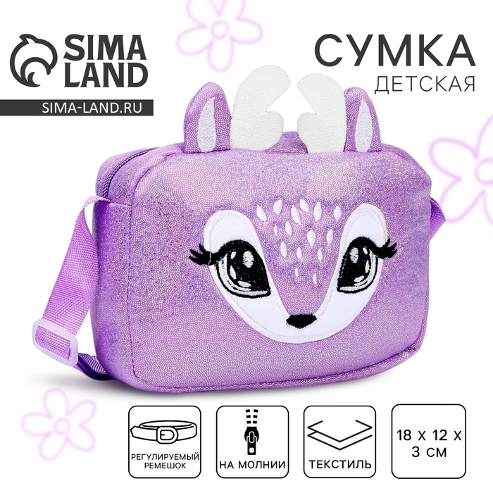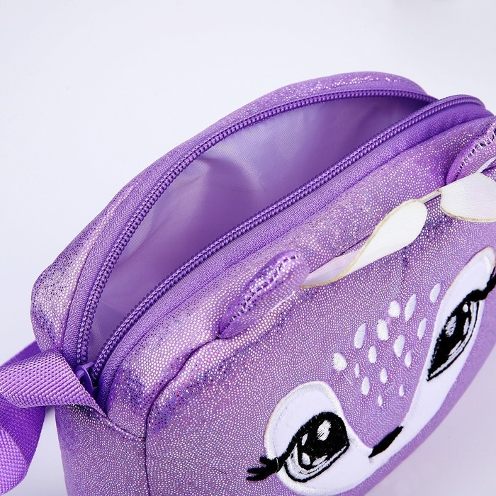 Сумка детская для девочки на молнии, длинный ремень, цвет фиолетовый