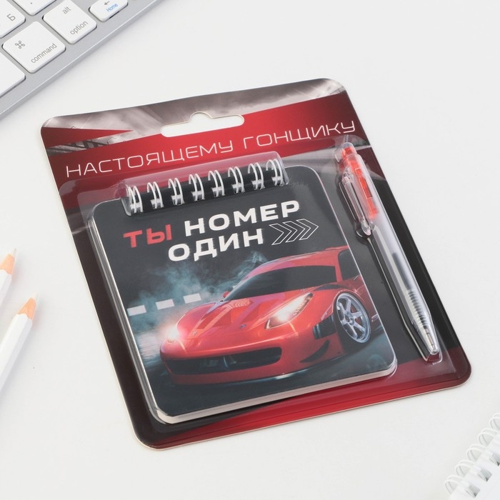 Подарочный набор блокнот 48 листов + ручка «Настоящему гонщику», 13,5 см х 15 см.