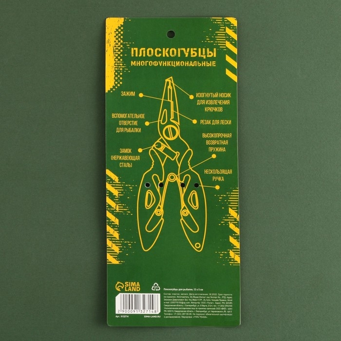 Плоскогубцы рыбака предназначены для обрезания плетеного шнура, монопольной и флюорокарбоновой лески. Так же можно отрезать стальные и титановые поводки. Затягивать рыболовные узлы, загибать разогнувшиеся офсетники, двойники и тройники. На рыбалке удобны при монтаже оснасток или вязании поводков. Так же удобно вынимать приманки из пойманной рыбы. Рыболовные плоскогубцы, позволят вам зажимать грузила и разгибать заводные кольца для блесен, воблеров и джиг головок, зажимать обжимные трубочки для стальных и флюорокарбоновых поводков. Этот мультитул имеет удобную рукоятку и механизм фиксации. Также, благодаря подарочной упаковке, их можно преподнести в качестве дополнения к подарку настоящему рыбаку!