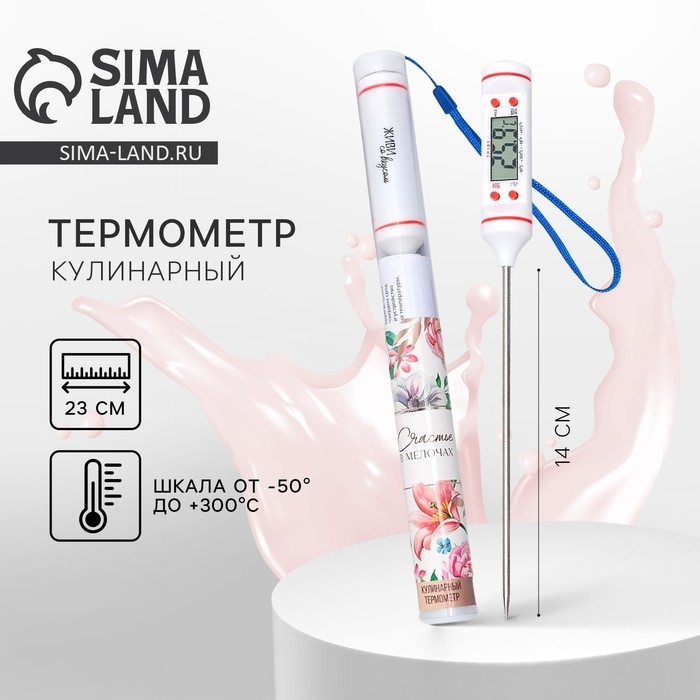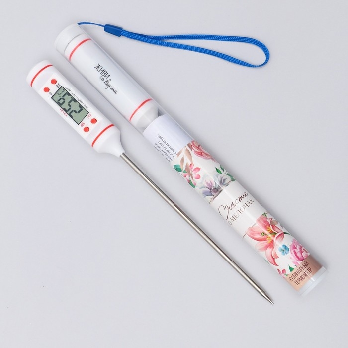 Термометр (термощуп) электронный на батарейках «Живи со вкусом», белый.