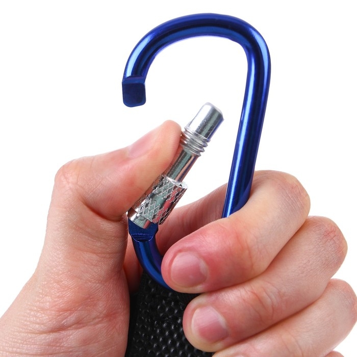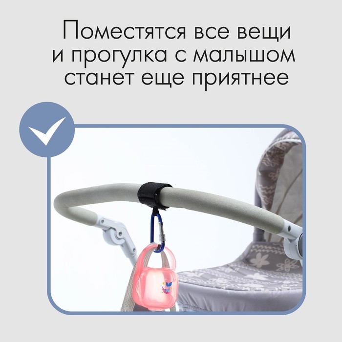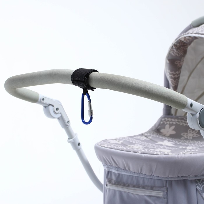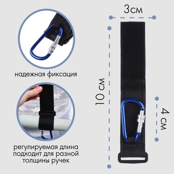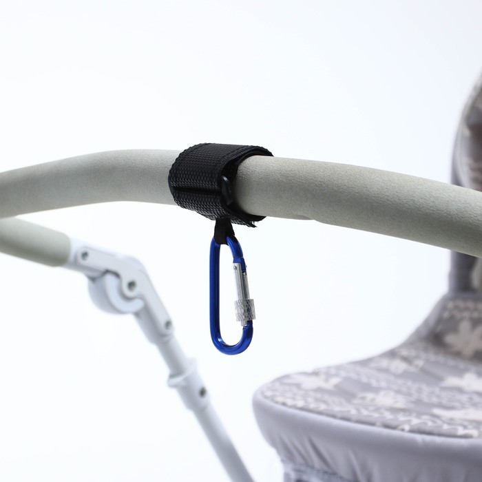 Карабин для сумок на коляску, на липучке, цвет черный/синий